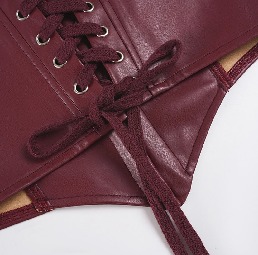 Turn heads with this statement two-piece set featuring a structured faux leather corset and a layered lace mini dress. Whether you choose the rich burgundy or soft beige shade, this look brings a romantic, high-impact vibe perfect for both nights out and special occasions. The corset is crafted with smooth faux leather, detailed with silver-tone hook-and-eye fastenings down the front and soft lace cups for a feminine touch. It’s paired with a tiered lace mini dress featuring delicate floral patterns and a sheer finish at the hem for a flirty edge. The corset and lace dress are fully separate, giving you styling versatility wear them together for a complete look or mix and match with other pieces in your wardrobe.