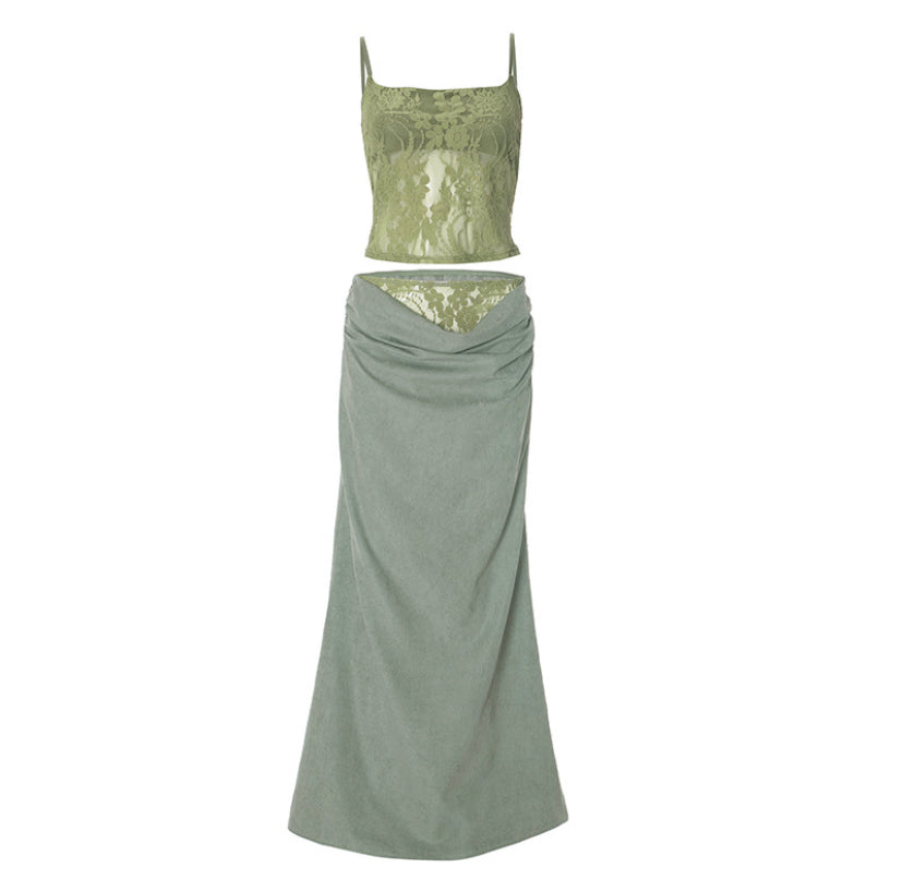 Sheer Lace Cami & Draped Maxi Skirt